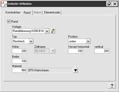 Ab speedikon V8i können Decken auch mit Randstreifen platziert werden. Dies kann z.B. eine Stahlbetondecke mit einem Dämmrandstreifen sein.