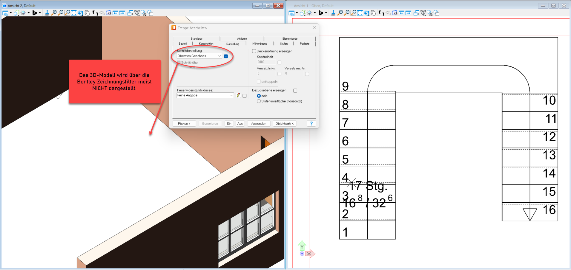 Das 3D- Modell wird über die Bentley Zeichnungsfilter meist NICHT dargestellt.