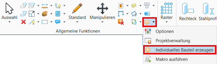 Für den Fall individueller Geometrien gibt es die Funktion "Individuelles Bauteil erzeugen".