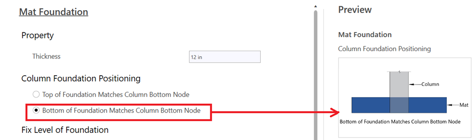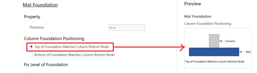 “Fix Level” indicates the level where the foundation dimensions are fixed. There are two options for this setting – “Top” and “Bottom”.