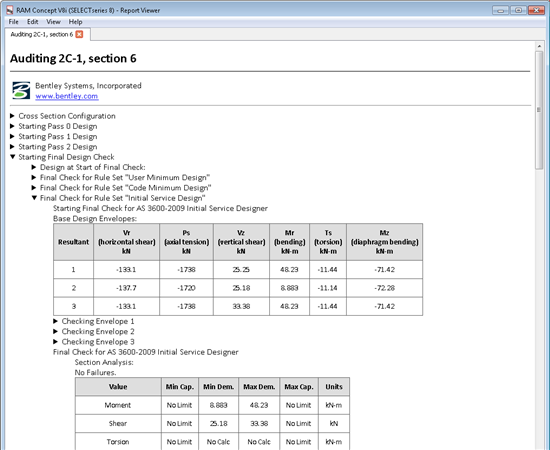 This release includes an enhancement to the auditing tool, where results are now shown in a graphical format rather than in a text file. Results are organized in an intelligent tree structure and details can be drilled into as far as needed. These improvements apply to both the cross section auditor and the punching shear auditor.