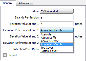 The vertical elevations of tendon and reinforcing objects (including manual tendons, profile polylines, and reinforcing) can now be referenced to the mid-depth of the slab.