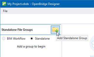 - Choose the Standalone workflow; by selecting Standalone, not the Default BIM Workflow, at the top right of the Standalone File Groups screen