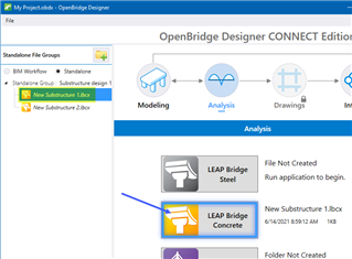 - Go to the Analysis tab and launch LEAP Bridge Concrete (LBC):
