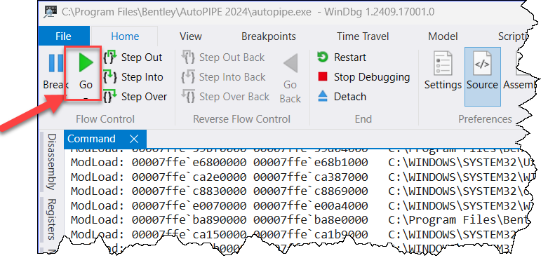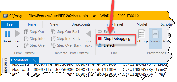 Note: The following is shown in WinDBG log after using Stop debugging command. and is not apart of the log file needed by Bentley development.