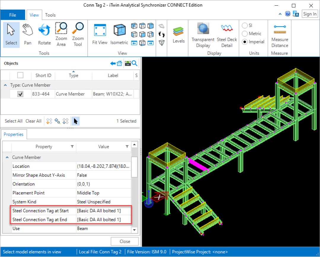 In the iTwin Analytical Synchronizer, the connection tags can be viewed for each member they were assigned to.