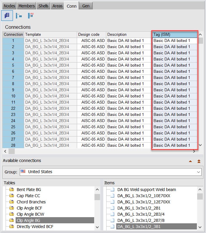 In RAM Elements, Connection Tags can be assigned to connections in the Connection Worksheet.
