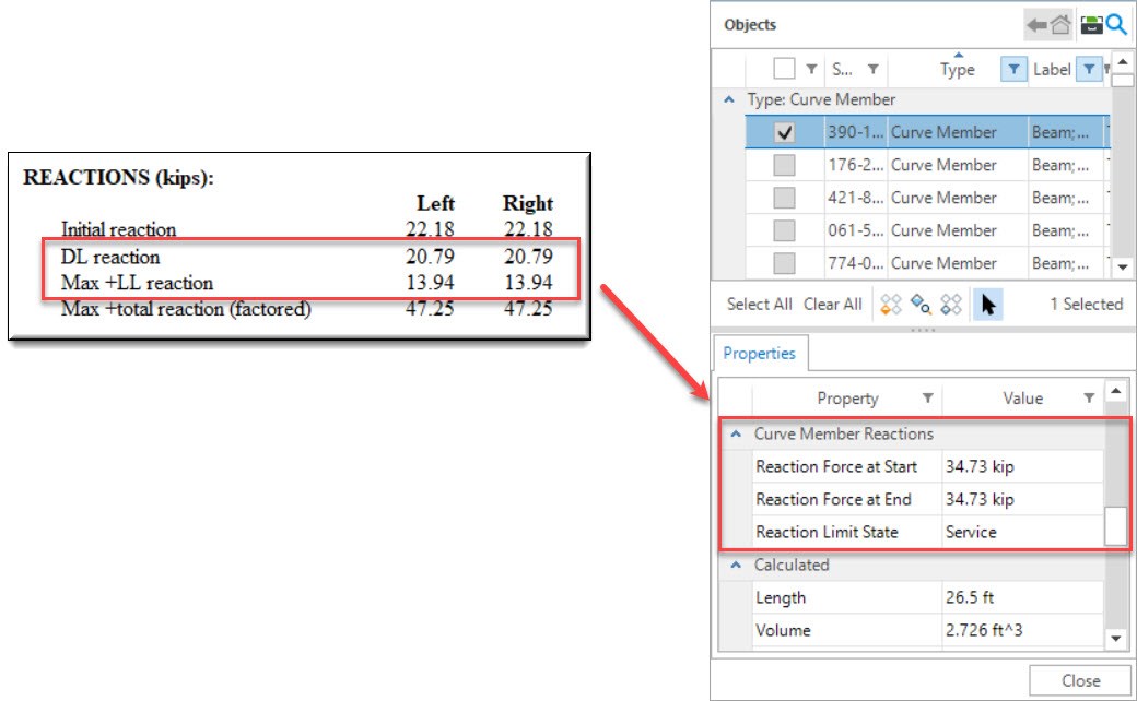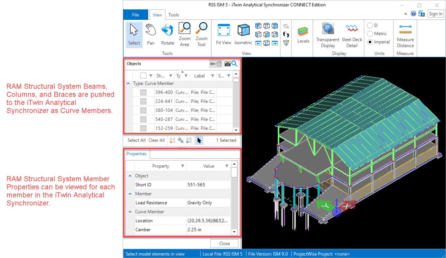RAM Structural System member properties can be viewed for each Curve Member object in the iTwin Analytical Synchronizer.