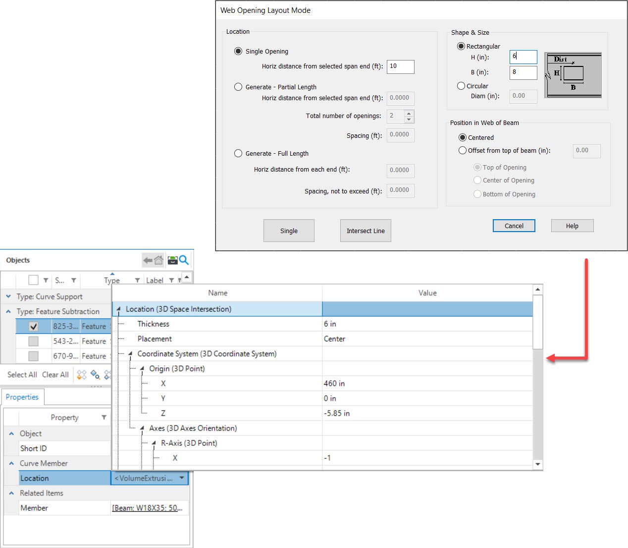 In RAM Structural System, web openings can be modeled in gravity steel I-Section Beams in the RAM Modeler. Web openings will be pushed to the iTwin Analytical Synchronizer as Feature Subtraction objects.