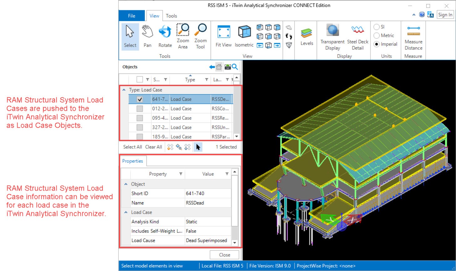 The RAM Structural System load cases included in the RAM Frame Analysis will be pushed to the iTwin Analytical Synchronizer as load case objects.