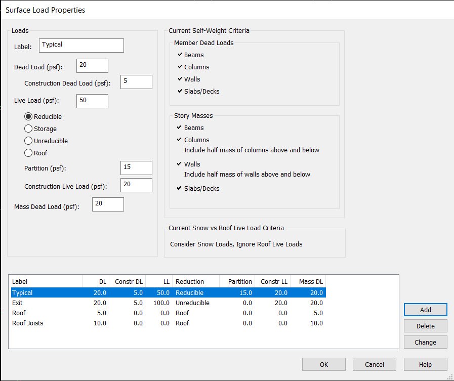 RAM Structural System Load Case |