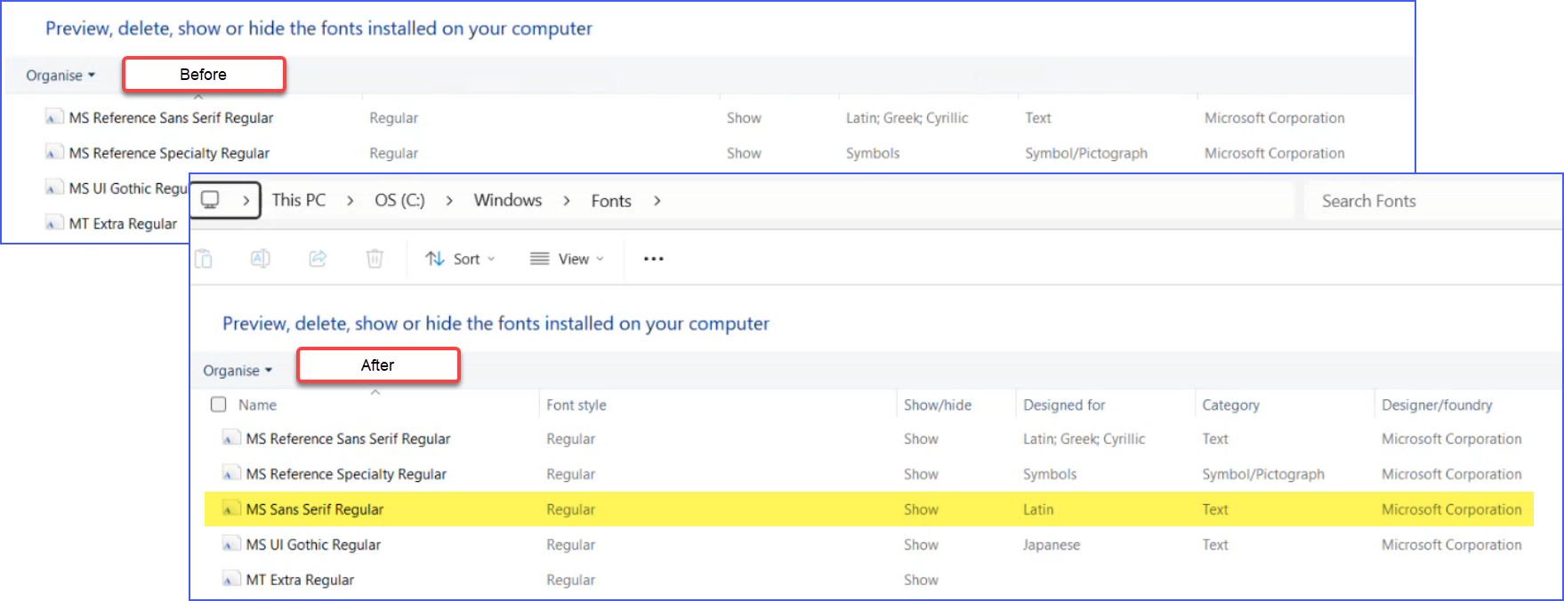 1. Do not be fooled, Microsoft Sans Serif is a different font. MS Sans Serif should be installed