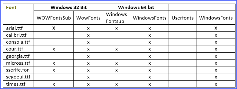 g. Examine the files; all of the specified fonts must be present in one or both of these files: