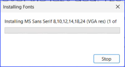b. Assuming font file in on the computer, at command prompt type - "copy C:\Windows\Fonts\sserife.fon %temp%"