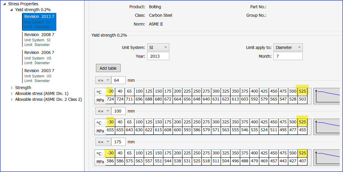 Note, a change in temperature affects the calculation. The help section mentions that there is no limitation on the design temperature, unlike the pressure which is limited