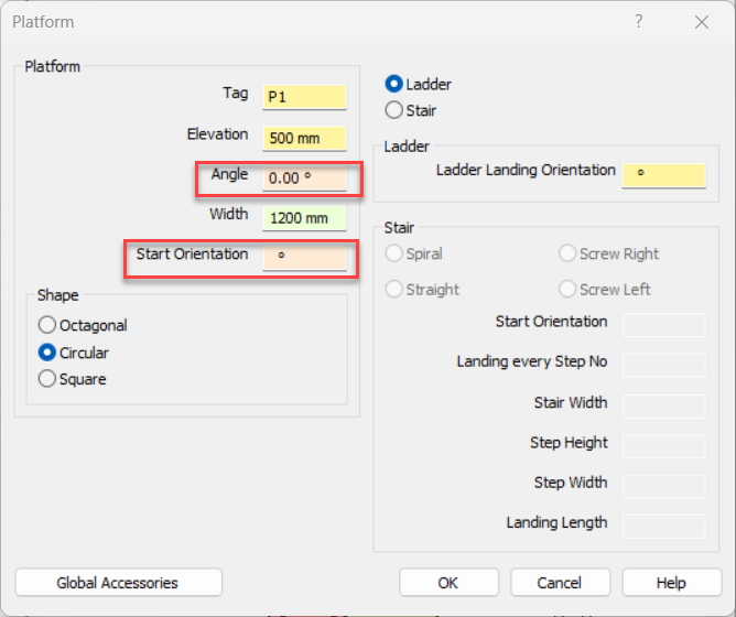 Incase you choose the Octagonal shape, platform must have an angle >= 45 ° (8*45=360)