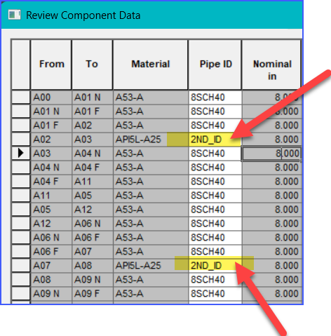 In the Column labeled Pipe ID, use the dropdown and select the PipeID to be used for the valve (ex 2nd_ID).