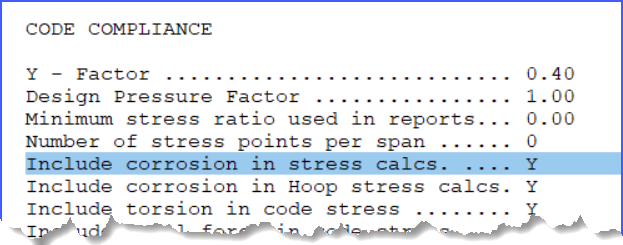 Setting shown in Output report, Code compliance section: "Include corrosion in stress calcs"