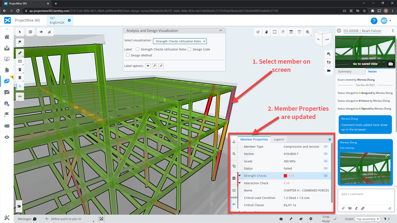 Once enabled you can see analytical design visualization and member properties. These features are only available within Analytical Design Review Mode.