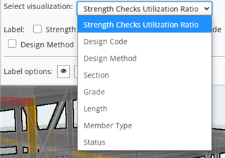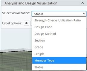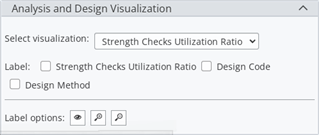 The Analysis and Design Visualization Widget provides selection of visualizations (grouping of pertinent members to a property value) along with on screen text label options.