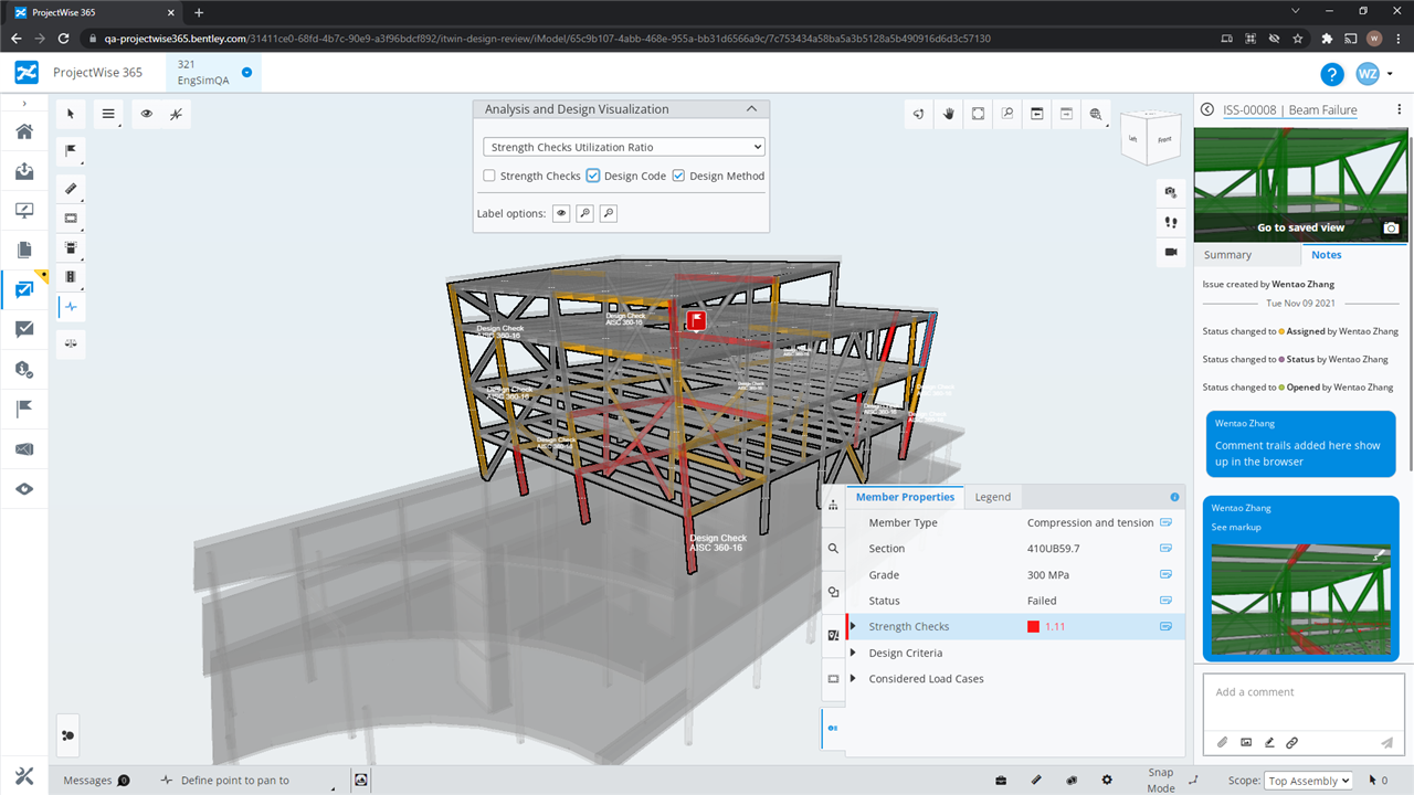 The analytical and design results widget extends review capabilities so engineers can collaborate more productively without recourse to the original desktop application that produced the analytical design.
