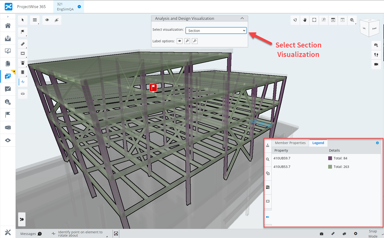 For example, if Section Visualization is selected. The properties pane would have its Legend tab updated to show the section names present in the model and member count next to each section name value.