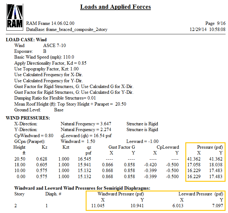 ASCE 7-10 includes three different procedures for wind load calculation: directional, envelope, and wind tunnel procedure. Only the directional procedure is implemented into the program. Program generated wind loads calculated per ASCE7-10 are ultimate loads.