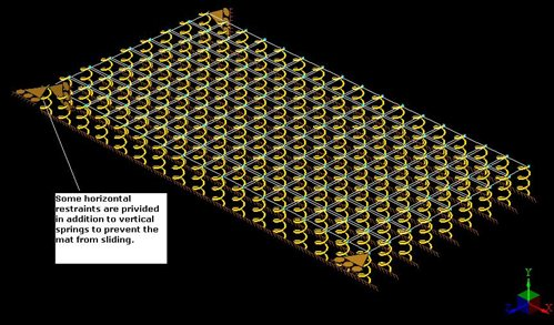 A certain number of nodal restraints are always required to keep the structure as a whole from moving. Another common case is one where a shell or mat foundation is supported by a series of vertical springs. While that is stable in relation to vertical loads, some mechanism must be provided to keep the mat as a whole from sliding around like a skateboard. This is generally achieved through the use of horizontal springs in addition to the vertical springs, or by restraining the translation of a node (or line of nodes) along the edge of the structure.