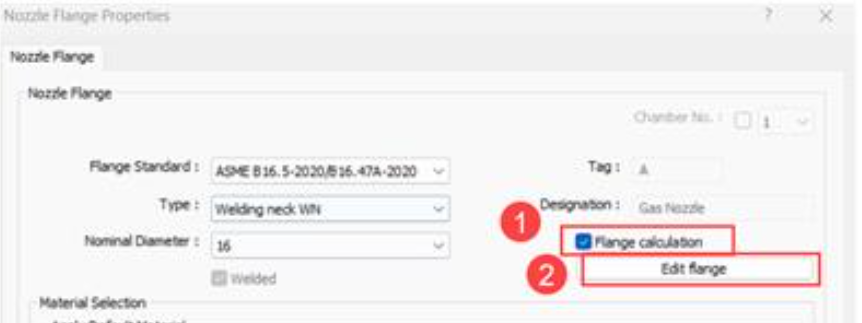 As mentioned earlier, you can select a standard flange and then use the Edit Flange option to check the Flange Calculation box. Once you select Edit Flange, the software will treat it as a body flange and perform flange design calculations using the dimensions of the standard flange. Refer to the screenshot below for guidance.