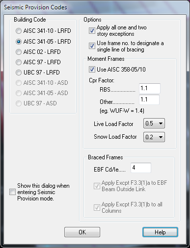 Within the building code certain prescribed checks (e.g. for braced frames) require the engineer to perform a global check on frames that are part of a single line of bracing. The engineer can assign the same frame number to all member that are considered a single line of bracing (typically for braced frames within ten percent of the width of the structure apart) and select this option to have RAM Frame perform the required checks on single bracing lines.