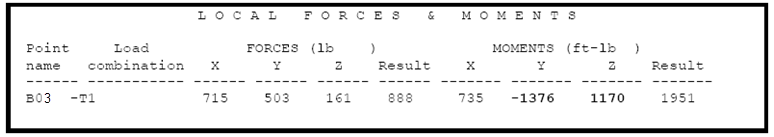 Table 2: Local Force & Moment table from AutoPIPE Output