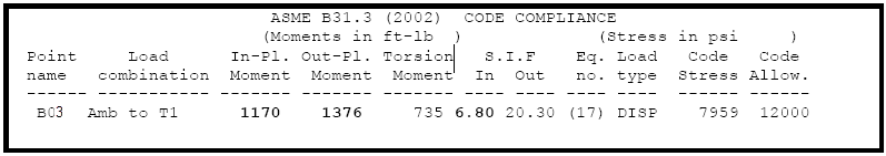Table 3: Code Stress from AutoPIPE Output