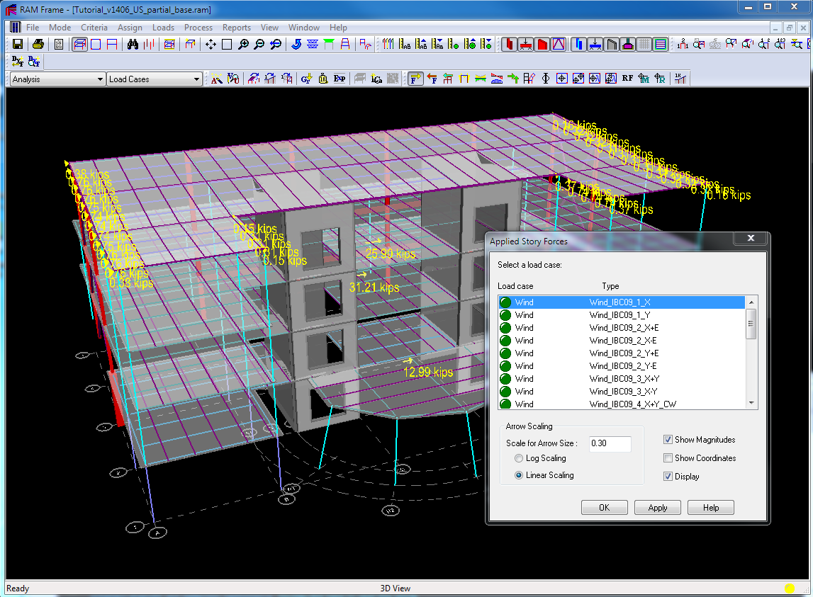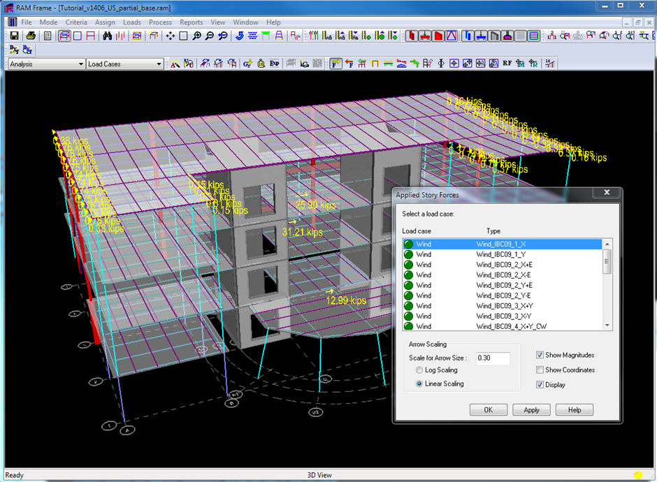 There are two kinds of lateral loads possible in RAM Structural System. The most common are Program Generated Diaphragm forces. The program can generate Wind and Seismic loads, including Dynamic Response Spectrum Analysis cases for most codes. This is done through RAM Frame - Analysis mode using Loads - Load Cases.