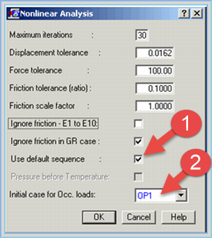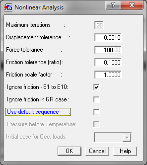 There are 2 settings to control load sequence both options are accessed by Non-Linear Analysis options dialog mentioned above.