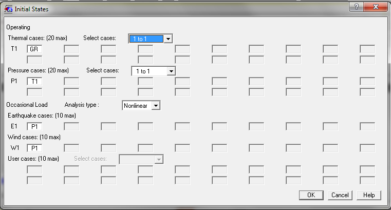 Conversely, pipe displacement and support load results can be significantly different if the Wind loads were applied to a piping system that had already been displaced by operating conditions, example OP1: