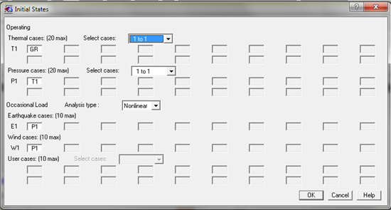 In actual piping systems, loads are applied sequentially rather than simultaneously. Piping is first subjected to its self‑weight during installation, followed by internal pressure during commissioning and thermal expansion during operation. Additional environmental loads, such as wind or seismic effects, may act later. AutoPIPE reflects this real‑world behavior by applying loads in a defined sequence, typically Gravity → Pressure → Temperature → (Wind or Seismic), with gravity always applied first.