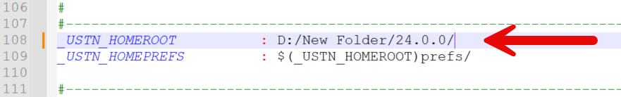 5. Scroll down to find the configuration variable "_USTN_HOMEROOT" and assign its value to "D:/New Folder/24.0.0/" as shown in the following screen grab.